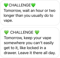 This week’s challenge is the biggest: quit vaping as a group! This week, we will get you through those first days right after quitting with support and skills.